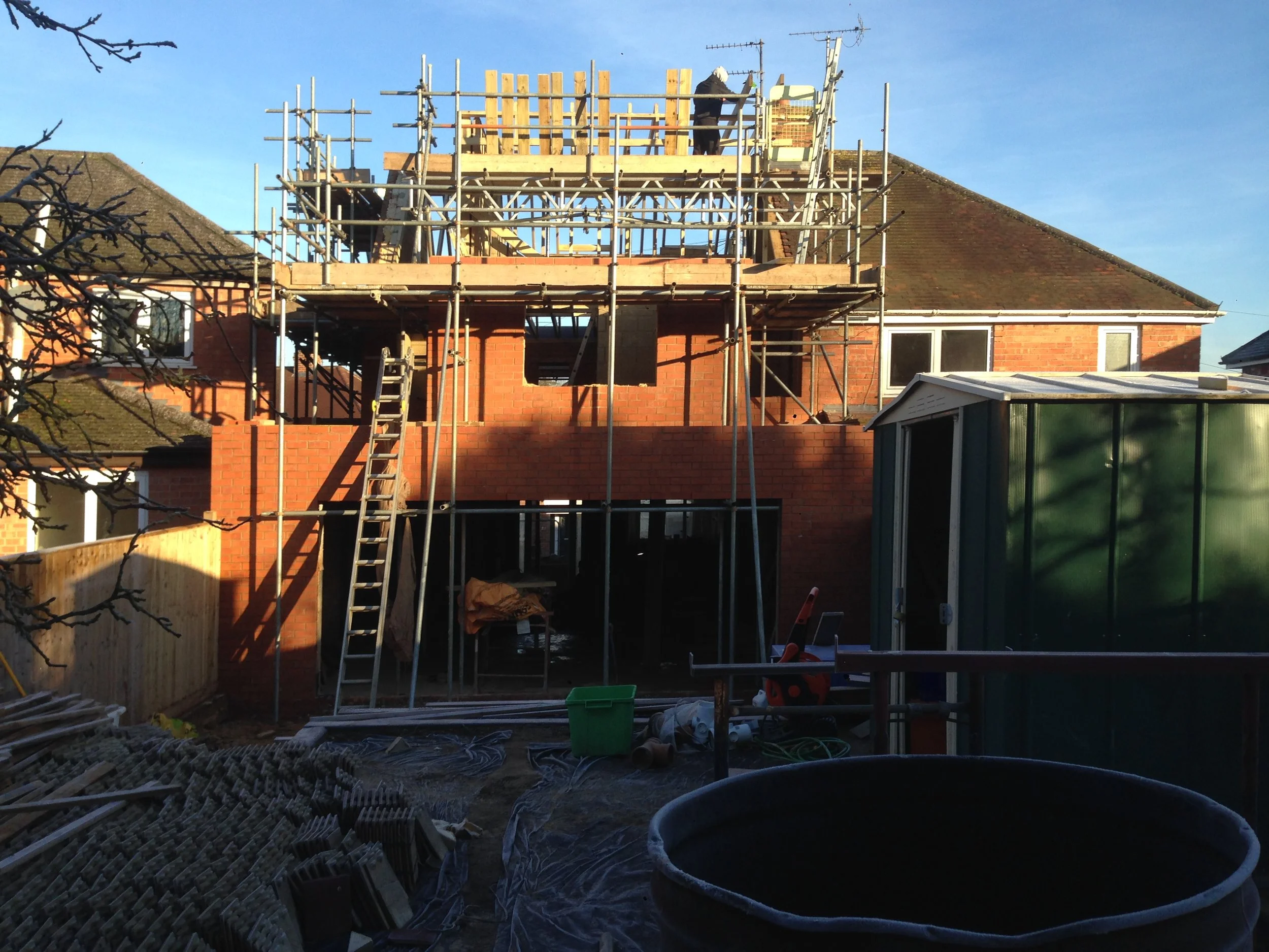 This project called for modernising an existing dwelling, using modern materials to blend in with the original building and turn it into a house fit for a young family with children. The garden was landscaped as well and the extensions gave more room upstairs.